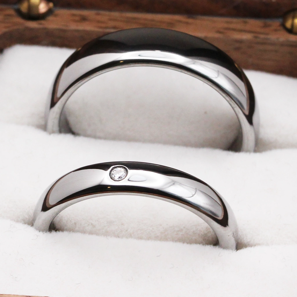 Nova Noir är ett ringpar som fångar balansen mellan styrka och skönhet. Den släta, spegelblanka ytan i silverpläterad tungsten reflekterar ljuset med subtil lyster, medan den mjuka rundningen ger en känsla av diskret lyx. Den mindre ringen pryds av en infattad syntetisk zirkon som tillför en elegant detalj – perfekt för par som vill bära något enhetligt men personligt.